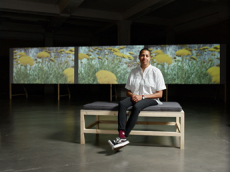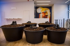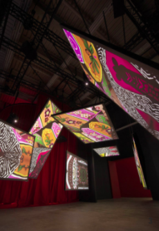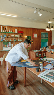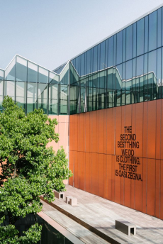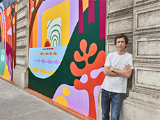 Remaining true to his allegiances, Simons enlisted the help of friend and artist Sterling Ruby, giving him free reign to imagine artwork appropriate for the iconic brand's headquarters. Ruby imagine America.