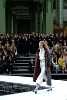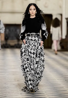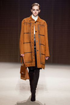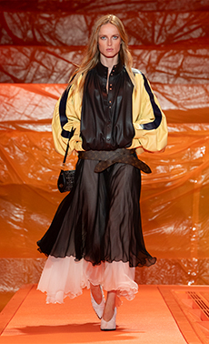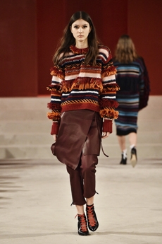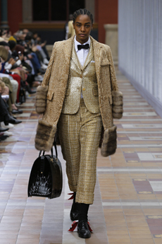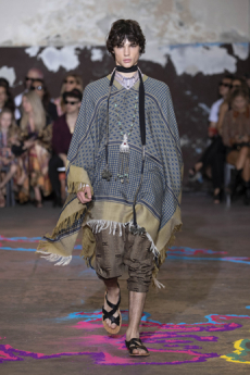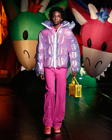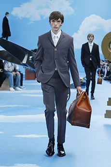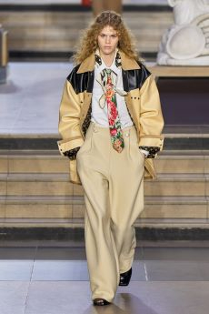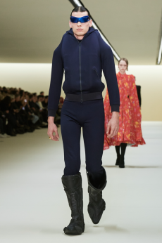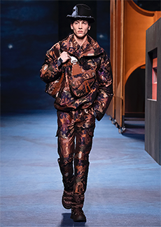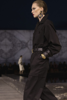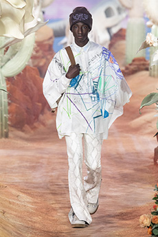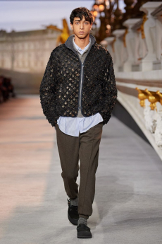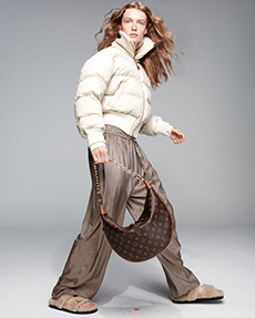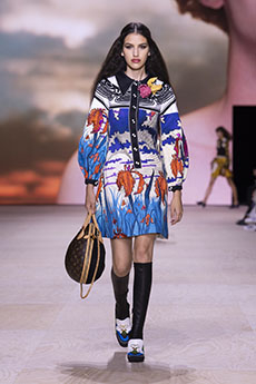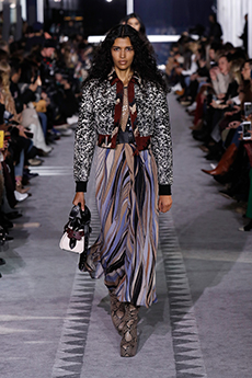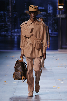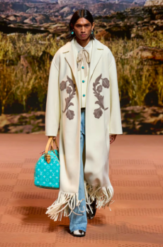 Ghesquière wanted to re-create that very sense of boundarylessness that doubled as more of a directional seasonal messages rather that an array of options for city living. This was an evocation of the nomadic, where the city blends with distant landscapes, the masculine blurs with the feminine and Louis Vuitton heritage meets a thirst for the future. A new play of stylistic lines emerges: great American sportswear classics and Slavic accents, inspirations from fashions of the past translated into the world of today, urban classics fused with the magnetic pull of folklore.