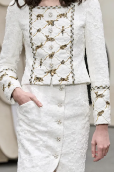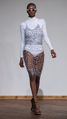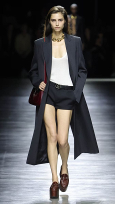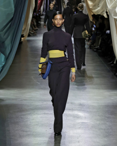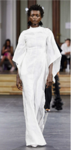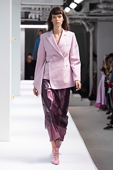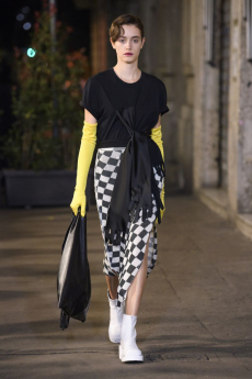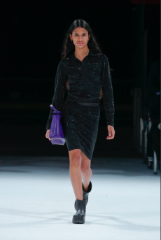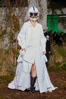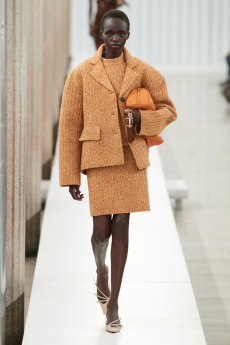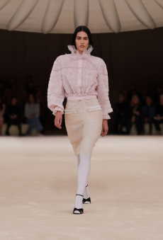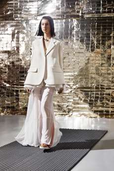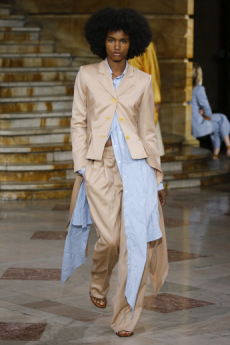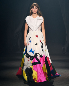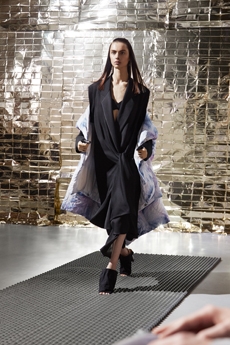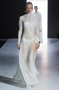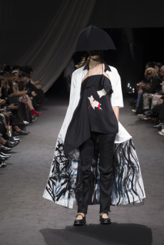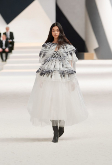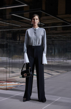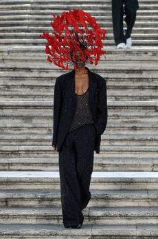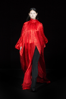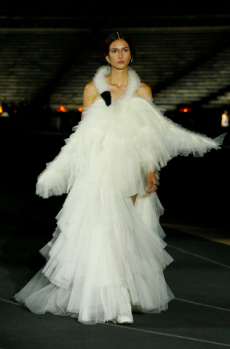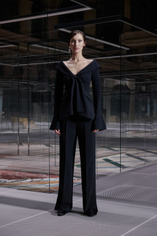 The last look, a dress deconstructing the idea of a smoking suit into an evening gown, said it all: Koma is in search of reinventing the house codes, keeping the identity of this iconic brand strong.