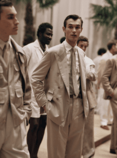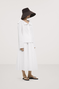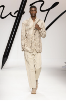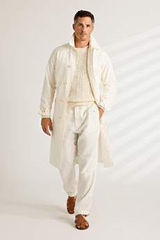 Crisp cotton poplins, fluid silks, cool linens, and draped worsteds echo the warmth and softness of the season. Each piece is designed to move with the wearer, embracing lightness without compromise on structure.
