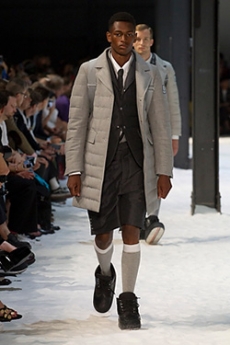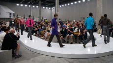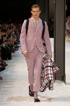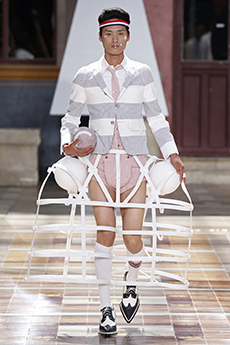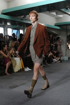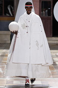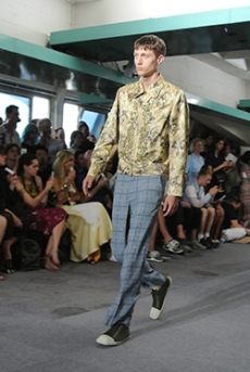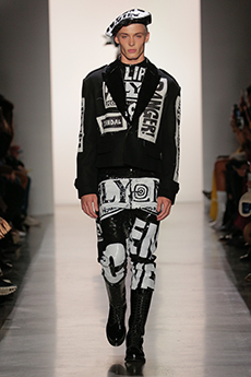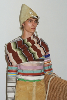 Marching band uniforms, plastic coated protection, power broker tailoring and antique handcrafted quilting, workwear and westernwear made for this unique parade. The collection finds equal merit in folk and function, food court and courtroom in a romantic and filmic outsider's view of the uniqueness of America.