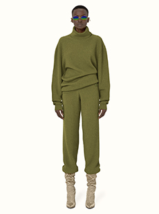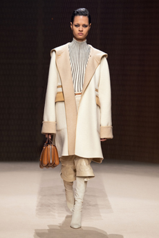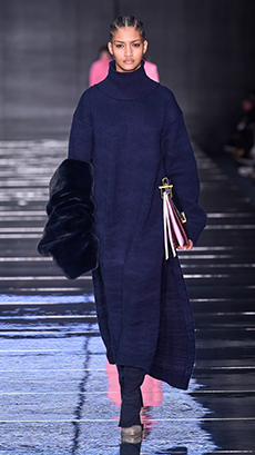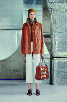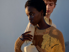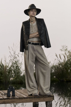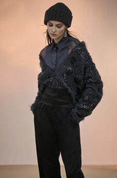 The collection appears almost weightless with the inclusion of fluid washed silks, Century Cashmere and pure mohair while giro inglese and mesh jacquards along with perforated and intarsia leather give hints of an ethereal substance.