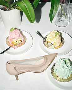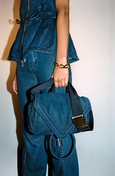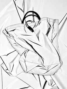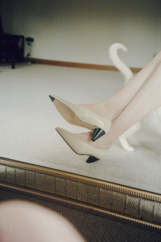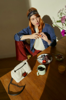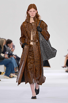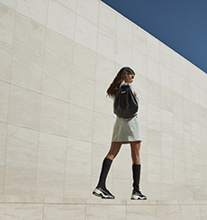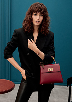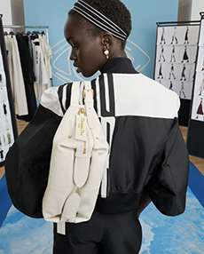 When movement is constant, garments and forms need to adapt. Sleep-to-street aesthetics transform ethereal satin slips and revamped pyjama sets into everyday uniforms. Like sculptural signets, bijoux accoutrements are built into new constructions—chains threading through backs, S-bar belts built into waistlines, charms adorning the bigger, bolder volumes of supple tote bags. Designed from the floor up, this season grounds each silhouette in an array of ballet flats and functional platforms that express the versatile proportions of the collection.