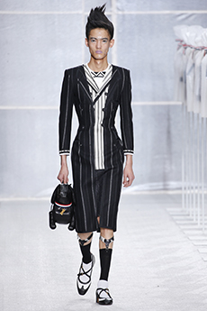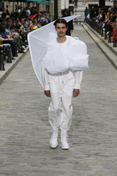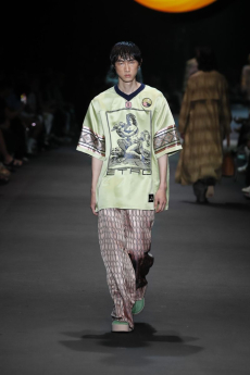 Yet Morikawa presented a collection with a composite of Japanese nostalgia. Like the summer nights spent wearing Jinbei – but here transposed in leather and denim – or those high school times – with the tartan motifs from school uniforms juxtaposed here with urban silhouettes. Christian Dada is beautifully grown up and we are looking forward to seeing the evolution of the brand.