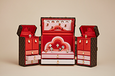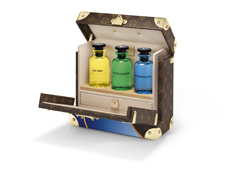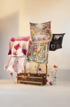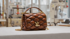 True to Louis Vuitton’s origins, Coddington embraces the art of packing. An exclusive line of plum-colored foldable nylon bags, including a Keepall that flattens completely, demonstrates her mastery of space and function. The highlight: her secretary trunk, inspired by the historic Stokowski trunk, outfitted with drawers, an easel, and even a nook for her cats.