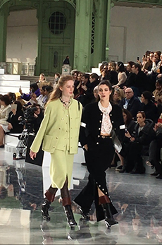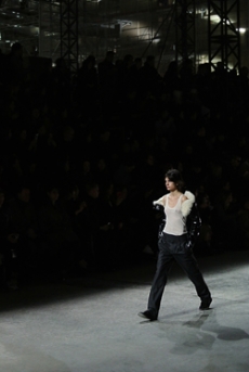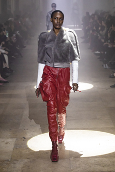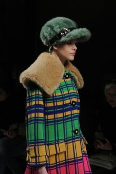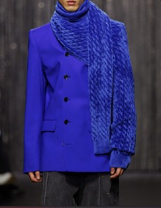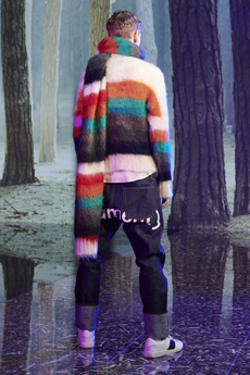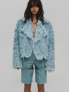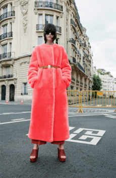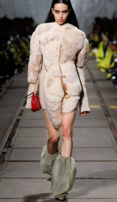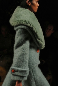 It was certainly the beautiful shearling one of the spotlight of the collection. In deep cobalt blue with black leather details, in denim, or in a striped rainbow coloured version, to pump up our gloomy mood in rainy, cold Paris.