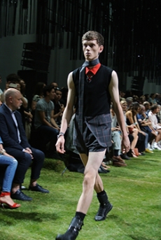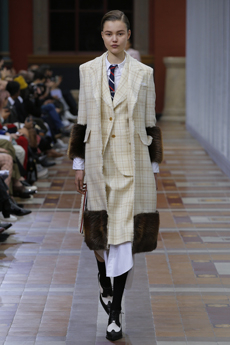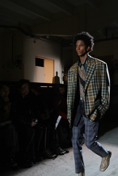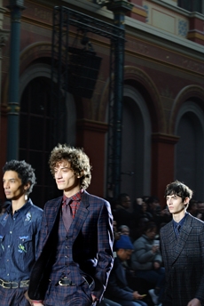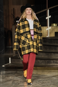 Mixed and matched tartans and handbags with imaginary propaganda newspaper titles gave a further energising accent to a splendid collection full of craftsmanship and a romantic post-industrial atmosphere.