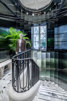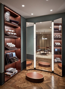 The stand-alone project revolves around the idea of intimate elegance with a distinctly Milanese feel and treats its bespoke services with a precise ritual. The experience begins right at the entrance where clients are welcomed by a valet and ushered in the Atelier which is conceived to comply with aesthetics and functionality of traditional tailoring ateliers: an apartment cum workshop with the public and working areas connected yet separable.