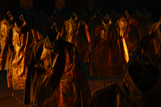 Like voices from afar, whispering a secret message, the sound of wind chimes as hung to push the spirits away, turning at the very end in a mesmerizing voice, singing on an incredible piano melody. Radiohead Thom Yorke’s fantasy, created ad oc for the show, was the perfect stage for Takahashi’s Utopia.