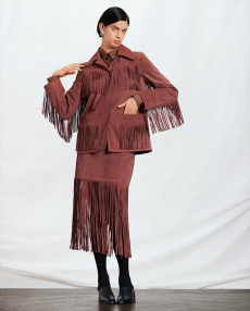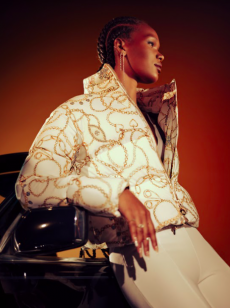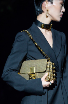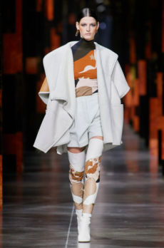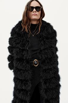 Snakeskin jackets, chinchilla bombers and full-length overcoats feature alongside astrakhan and crocodile skins as the ultimate statements of elegance whether on the slopes or in the city. Trousers are high-waisted and denim takes centre stage in trousers and double-breasted jackets.