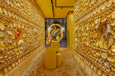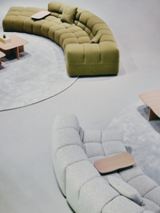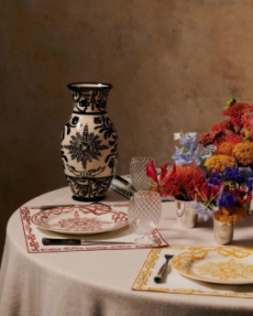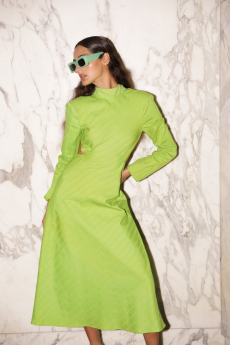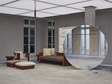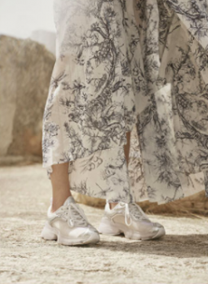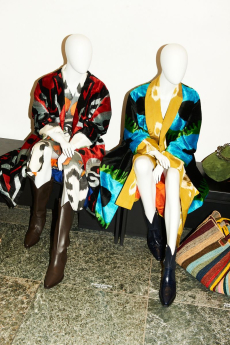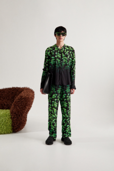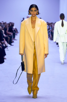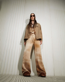 The collection places color at its core, expressed through nuanced mélanges, artistic prints, and balanced contrasts between earthy and sunlit tones. Signature silhouettes are reinterpreted with a sense of lightness and refinement, while the free, horizontal layout of the presentation mirrors the weightless elegance of the garments. Carpets dyed in the collection’s palette, reflective surfaces, and sculptural furniture create an immersive environment where fashion, art, and architecture meet.