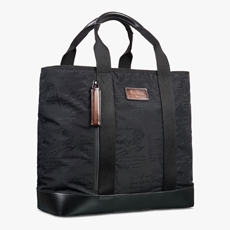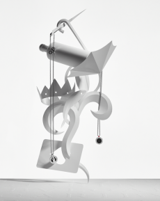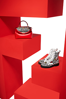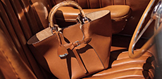 Accessories extend the narrative — pumps bound with cords, square-toed driving shoes, the rounded La Ferrari Dino Bag, the angular Nello Tool Case, jewels shaped like bolts and padlocks. Each piece resonates with the pragmatic poetry of the workshop.