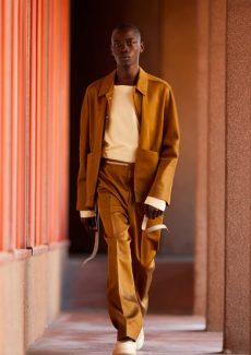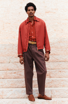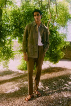 Layering remains key, with overshirts in velvet, denim, and fine wool checks adding depth and colour over core cotton and jersey pieces. Fabrics are chosen for their tactility—Italian-milled wools, dense cotton, supple velvet, and washed canvas—each enhancing the collection’s sensory appeal. The result is a wardrobe that feels both grounded and elevated, pragmatic yet quietly luxurious.