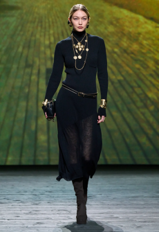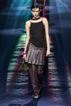 This season, the brand leaned into dualities: crisp tailoring against flowing chiffons, washed pastels set beside stark blacks and metallics. The tension gave the collection its shape. It wasn’t about reinvention so much as recalibration—refining a language he’s been speaking for decades into something relevant for a restless audience. Accessories functioned less as ornaments and more as structural punctuation, grounding looks without tipping into excess.