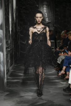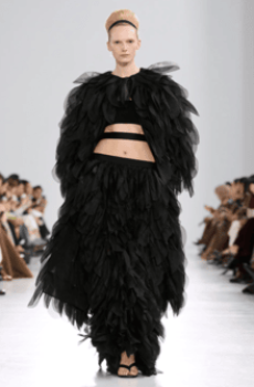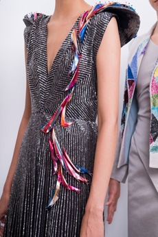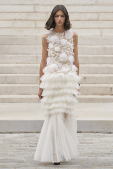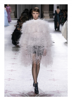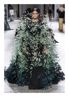 It is a touching collection, youthful and powerful. The last sequence of evening dresses in silk tulles with an overwhelming embroidery work, glass beads, stones, fringes, loose thread and the house favourite feathers, give the final emotional blow for this magic collection