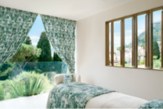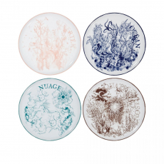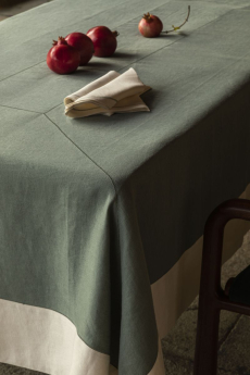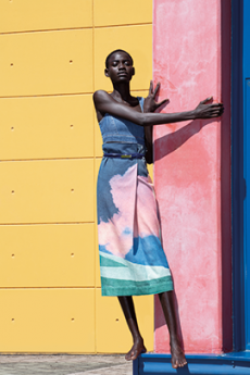 Delicate and naturally-inclined the color palette features shades of walnut, deep cypress green and bleached aqua and optical white is afforded some much-welcomed color flashes.