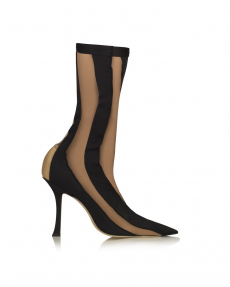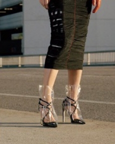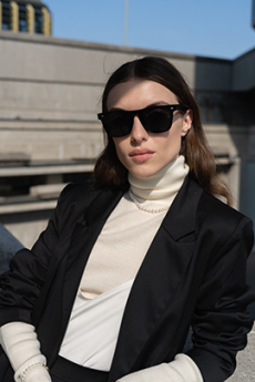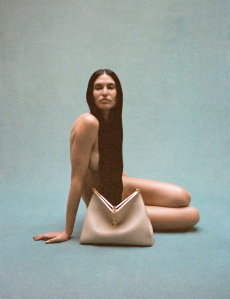 The silhouette is made for women in motion: precise yet breathable, revealing yet composed. Bras and gilets become styling anchors, worn beneath or above transparent layers in controlled contrasts of skin and shadow. Knitwear sculpts and releases, dancing with light like wearable architecture.Accessories speak softly but with intent. Kitten heel mules offer freedom and poise, while a new soft bag, complete with Sportmax’s S-hardware and leather flora, finishes the look with elegance in motion.