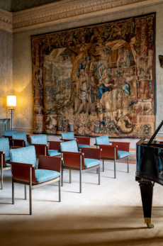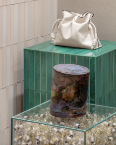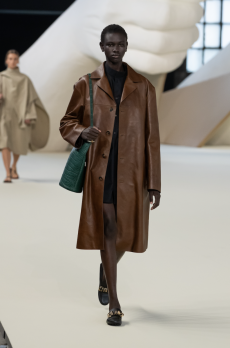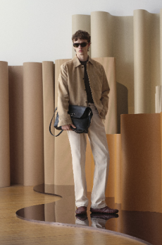 Leather goods and new bags are displayed on 20th-century Italian furnishings, forming a subtle dialogue between past and present. The result is a presentation that goes beyond the runway format, positioning Loro Piana not only as the master of fibres but as a cultural interlocutor, weaving together heritage and innovation.