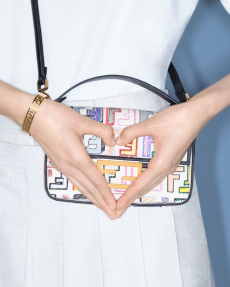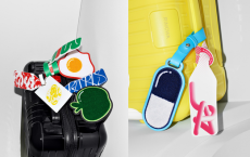 This whimsical journey began in 2019 with Catogram, a playful dialogue between Coddington’s cats Pumpkin and Blanket and Nicolas Ghesquière’s dogs, Achille and Léon. Today, her current muses — Blondie, Blanket, and Jimi — venture even further, roaming from Sydney to London, the Amazon to the Great Wall of China, and even into space. Their travels inspire a series of graphic patches reminiscent of labels once adorning Louis Vuitton trunks, charting destinations near and far.