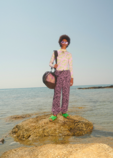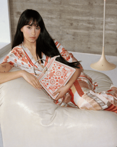 Coddington also reimagines the wardrobe of a seasoned traveler. Midi dresses carry signature House prints alongside exclusive mice-and-cat motifs, while her iconic pyjamas are redefined as chic daywear. Comfort remains central: flat sandals, tennis shoes, and soft layers of cashmere, silk, and cotton designed for effortless journeys.