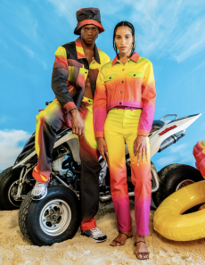 The collection reimagines the exuberance of past decades — Fiorucci’s own heyday of pop culture and nightlife — through the lens of today. Candy pinks, acid yellows, and electric blues animate structured jackets, cropped knits, and sharp-cut denim, while archival graphics find new life across tees and outerwear. The mood is rebellious yet optimistic, a wardrobe designed to be lived in with spontaneity.
