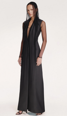 Burton’s vision begins with the deliberate deconstruction of tailoring, peeling back its rigid framework to reveal skin and an ethereal sense of ease. This interplay of concealment and revelation creates a nuanced female vocabulary - a poetic dance between dress and undress, armor and vulnerability.