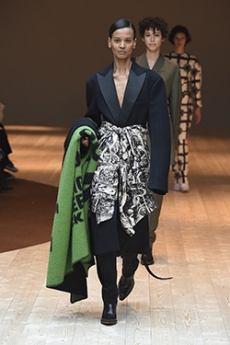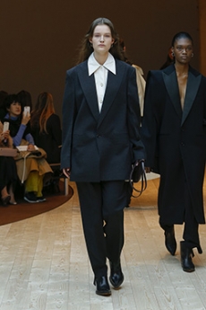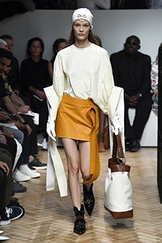 The mix of fun, classic, and urban elements is something we have seen season after season where individuality has been the key. Beautiful leatherwork as rooted in the brand's Spanish heritage, but also Anderson’s favourite hints to fishermen and sailors’ daily-life. Presented in the Parisian showroom the collection is the image of a further complexity and playful daring attitude from the English designer now in his fourth year at the helm of Loewe.