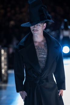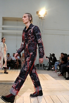 Interestingly, hip-hop is made elegant in this line giving birth to intriguing pieces such as the dark floral garments designed by Japanese artist Toru Kamei.