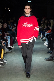 Puffer jackets in aluminium silver as reminiscent of drug wrappers, Coca Cola-red sweatshirts with Heroin written in the same typography as the iconic American drink, sweaters in psychedelic orange and blue tones serving as glimpse of post-drug hallucinations.