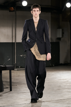 Morikawa’s collection is imbued with duality - certainly the epitome of youth itself – and that uncertainty and struggle of reaffirmation of young individuals. We see relaxed men’s cut shirts that reveal an incredible heavy textile at the touch, deconstructed jackets that show the lining on the outside, lurex raw materials, all surprisingly soft to the touch.